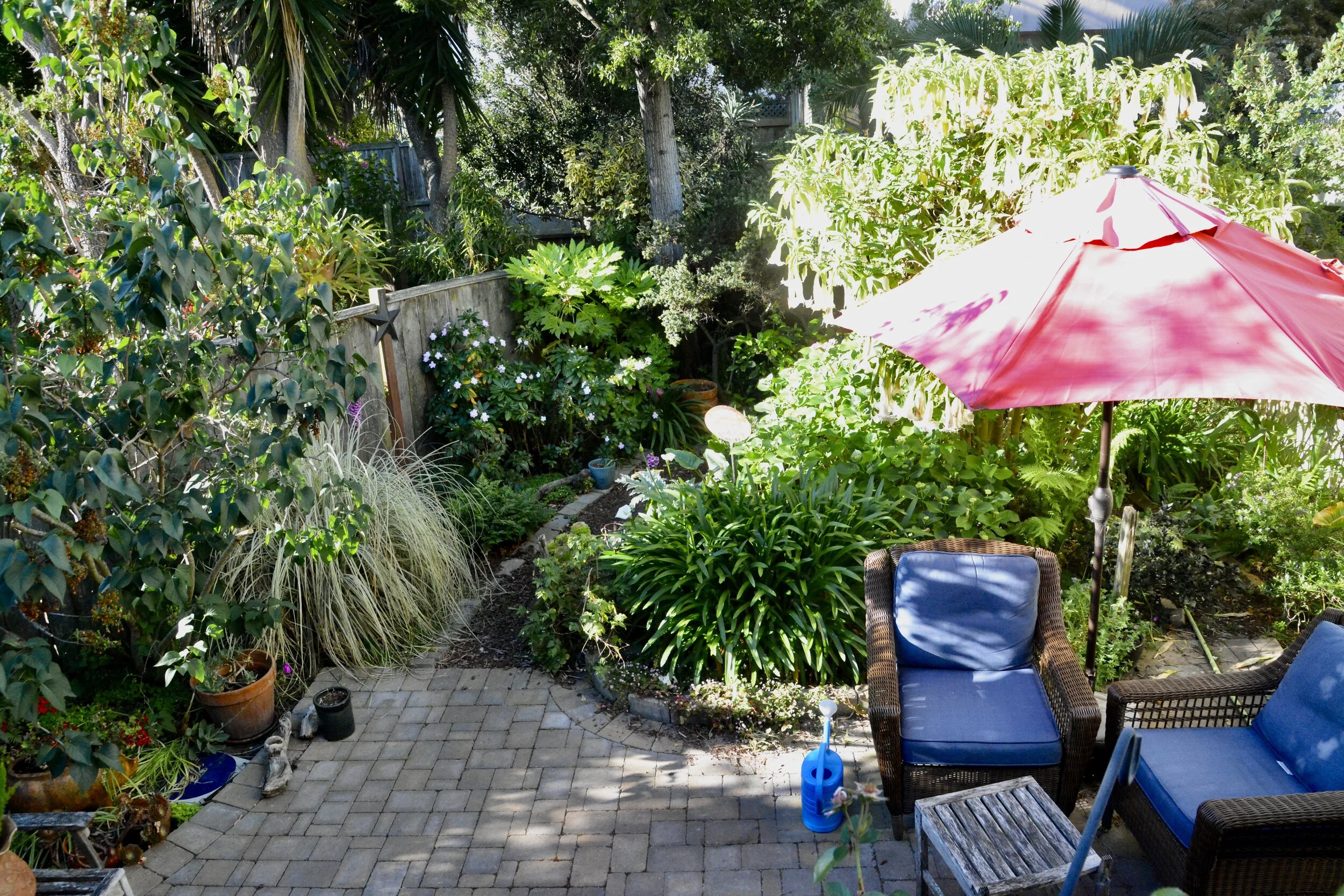 Our garden’s lefthand path is the main thoroughfare to the back shed. But it’s longer than you'd expect because we made it an ’s’ to add interest and to maximize the room for plants; there’s always something to look forward to around the bend. The righthand path is narrower than the left and messy with calla lilies, shrub roses, and ferns that sometimes overshoot their boundaries. You can barely make it out. But the smaller path is a straight shot to the shed. It's how I take the hose for watering in the back.