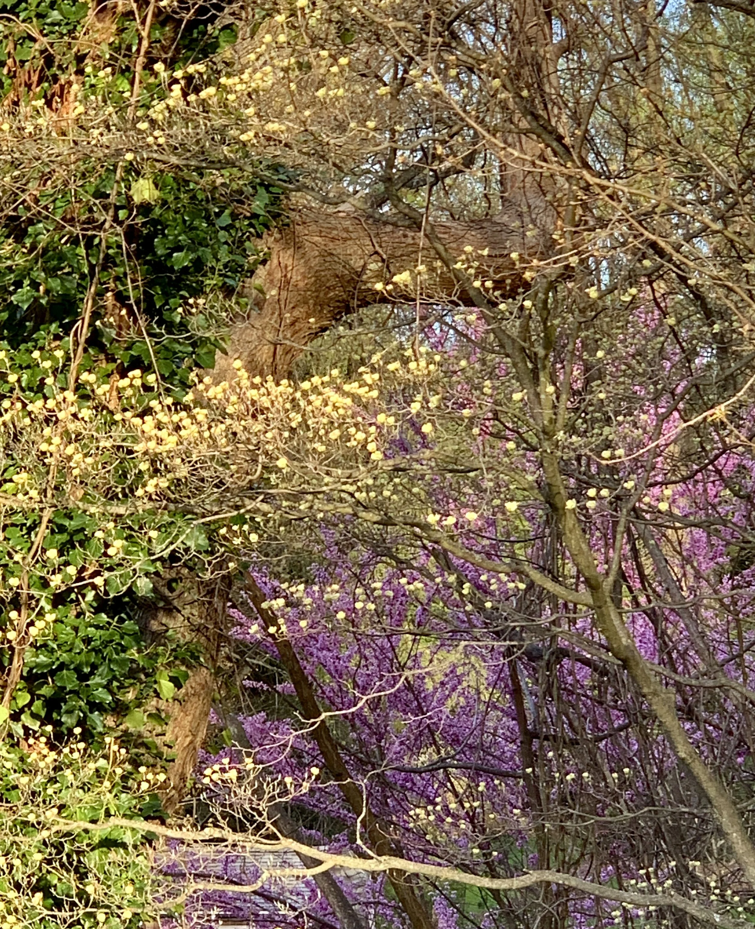 From our new bedroom window I watch the virtual onslaught of a Pennsylvania spring - color and light exploding as far as the eye can see, changing by the day, sometimes by the hour. This is what I had forgotten. This is what takes my breath away - distant memory and new experience combined. Today it is the morning light through emerging dogwoods, with a stunning redbud tree behind. Yesterday it was the light through the delicate new leaves of the Japanese maples that hover over our back door, setting them on fire. How lucky we are to have found a place with trees, and light, and memories. How lucky we are to see another spring!