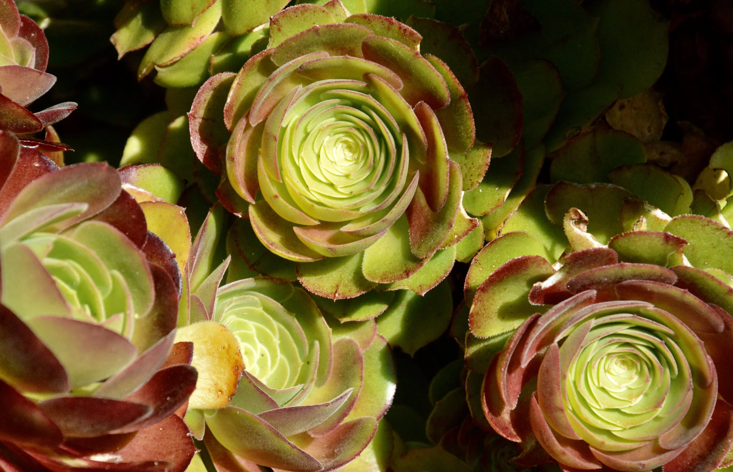 Another view of the succulent Aeonium “(Blushing Beauty”) which still does not do justice to the way in which these lovely geometric flowerets climb over each other as they grow. This one at the bottom of the stairs is particularly bountiful, spilling out over the bricks and breaking off when the cumulative weight gets too great. These are not the plant’s strange flowers you see here (see days 8 and 39), they are the succulent itself - its crowded, messy, beautiful everyday life.